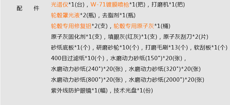 | LG-011 | 輪轂罩光液 | 采用輪轂專用罩光液,硬度高,附著力強(qiáng),耐磨性、耐化學(xué)性、耐汽油性、耐黃變性佳,高光澤、高豐滿度鏡面效果,透明度達(dá)99.999%。硬度達(dá)4.2H,抗黃變,耐磨擦,壽命可達(dá)2年以上。 | 2(瓶) | ![]() |