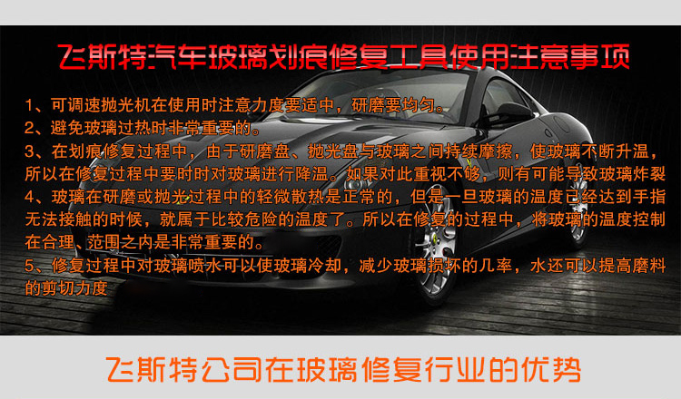 飛斯特汽車玻璃劃痕修復工具,采用先進的微觀修復技術,使玻璃劃傷、刮傷的修復變得快捷、干凈、經濟且有效。