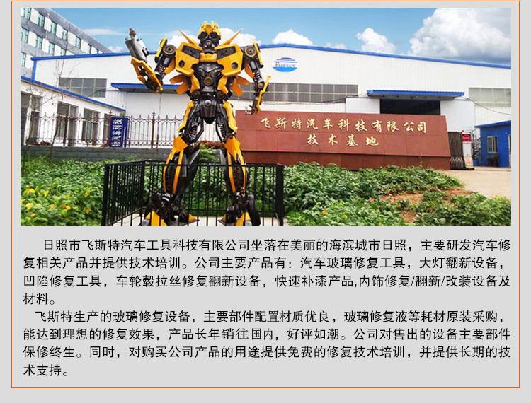 山東飛斯特汽車科技有限公司坐落在美麗的海濱城市日照,主要研發汽車修復相關產品并提供技術培訓。公司主要產品有:汽車玻璃修復工具,大燈翻新設備,凹陷修復工具,車輪轂拉絲修復翻新設備,快速補漆產品,內飾修復/翻新/改裝設備及材料。